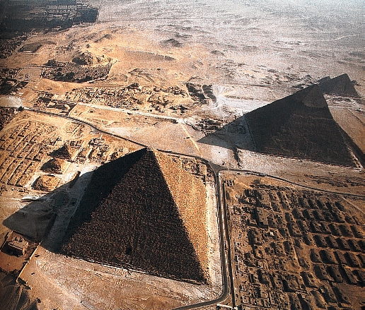 Jedoch gelang erst die dritte Pyramide. Die erste (2630 v. Chr. 92 Meter hoch) war ebenfalls eine Stufenpyramide, die zweite (2620 v. Chr., 105 Meter hoch) hatte zwar schon glatte Oberfl�chen, aber einen "Knick". Aus statischen Gr�nden musste der Winkel auf halber H�he abgeflacht werden.